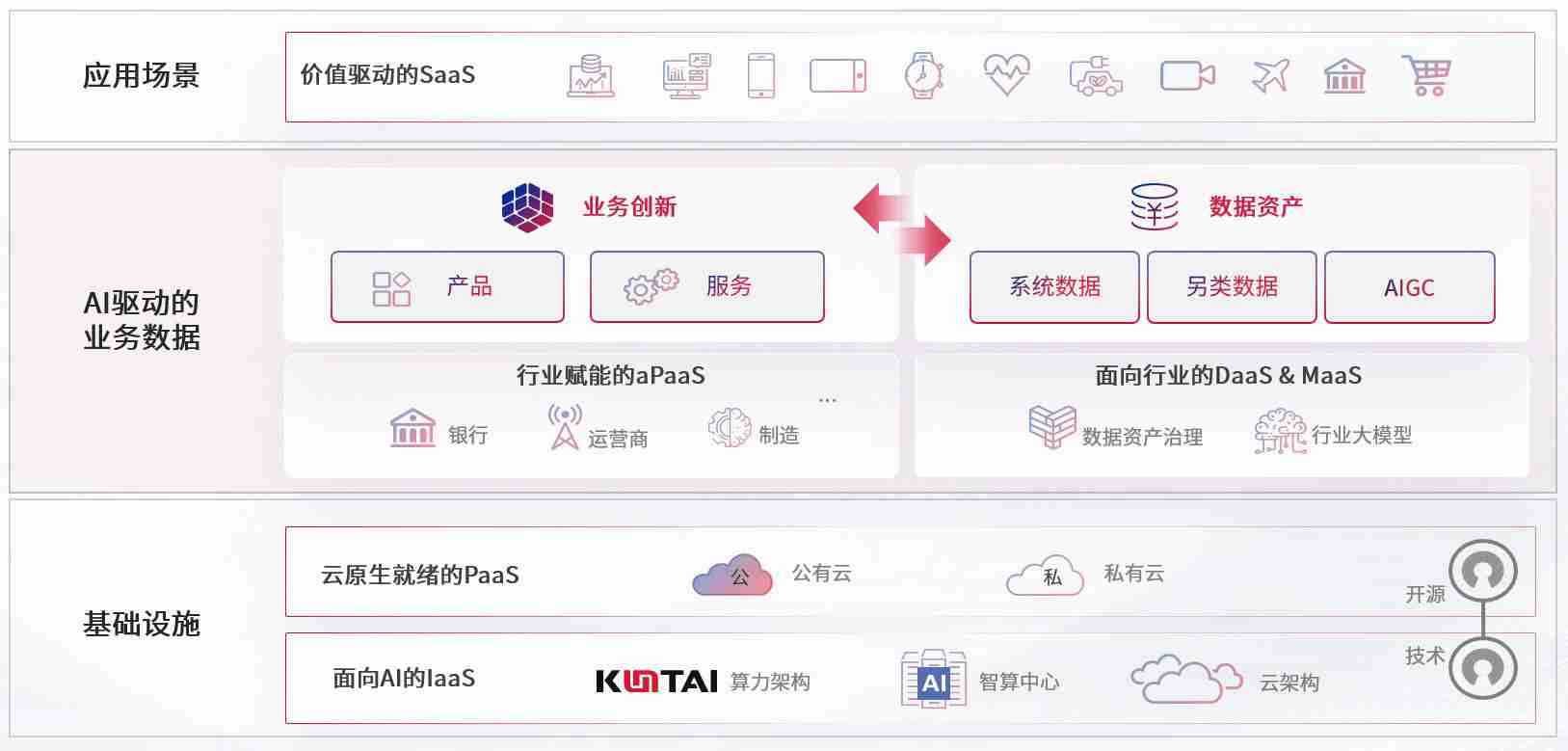 数字时代,,,围绕企业数字化转型的关键要素,,,,28娱乐数码开创性的提出数云融合战略和技术体系框架,,着力在云原生、、数字原生、、、、AI原生和信创产业上架构产品和服务能力,,为处在不同数字化转型阶段的快消零售、、汽车、、、金融、、、、医疗、、、、政企、、、教育、、运营商等行业客户提供泛在的敏捷IT能力和融合的数据驱动能力,,构建跨界融合创新的数字业务场景和新业务模式,,,,助力企业级客户建立面向未来的核心能力和竞争优势,,,全面推动社会的数字化、、、智能化转型升级。。