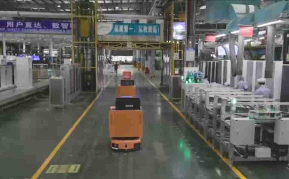 为车载冰箱物流配送打造的智能解决方案,,,包含产中物流通过潜伏举升AMR搬运至线边,,,产后成品物流智能仓储,,,流程包含产中物流智能齐套入库,,,线边安灯叫料AMR智能配送至线边,,,成品入库、、、、出库,,,,通过无人堆高车机器人,,,,智能仓储管理替代人工作业管理,,,,实现更高存储、、、更高效率、、、、更具柔性化的解决方案。。。